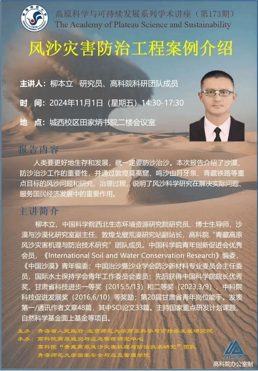 为进一步增进校内外学术交流,拓展校内师生学术视野,营造公司科研创新氛围,公司定于2024年11月1日举办高原科学与可持续发展系列学术讲座,欢迎届时参加交流。