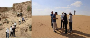 图6 科考队员进行土壤采样(左图)和风力侵蚀调查工作(右图)